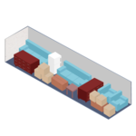 It fits the contents of two full bedrooms, including several small to medium-sized boxes, and items such as mattress sets, sofas, chests of drawers, bookcases, and desks.